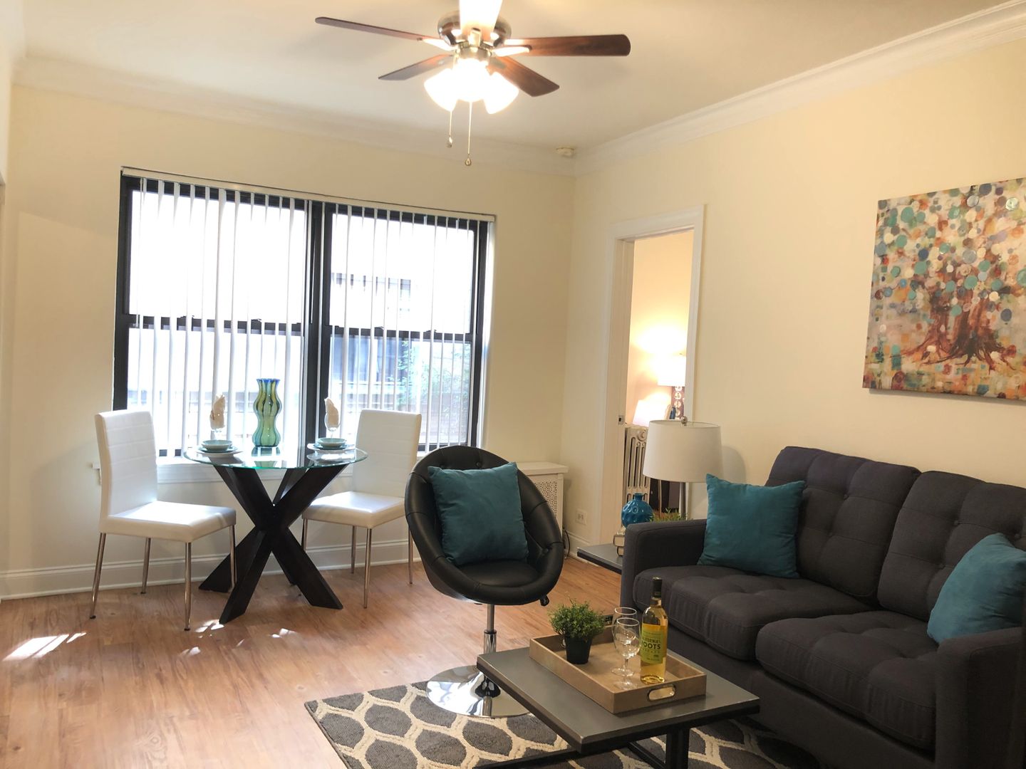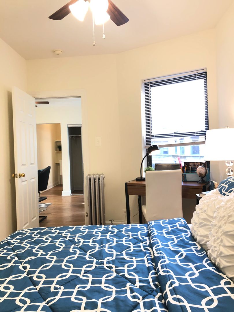 This lovely, functional second-floor one-bedroom, conveniently located in the popular Ravenswood neighborhood, features hardwood floor throughout the main living/sleeping rooms, with ceramic tile in the bathroom. Apartment overlooks a neighboring, secured courtyard, getting better-than-typical ambient light. Good closet space in the bedroom and living room. Apartment is cable- and internet ready via Comcast or AT&T Fiber. Kitchen features large cabinets with ample counter top and cabinet space.
